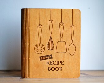 Amazon Com Blank Recipe Book Binder Personalized Cookbook Wood Recipe Journal Cooking Gift For Wife Custom Cookbook Housewarming Gift For New Mom Kitchen Gift Christmas Gift For Mom A5 160 Pages Handmade
